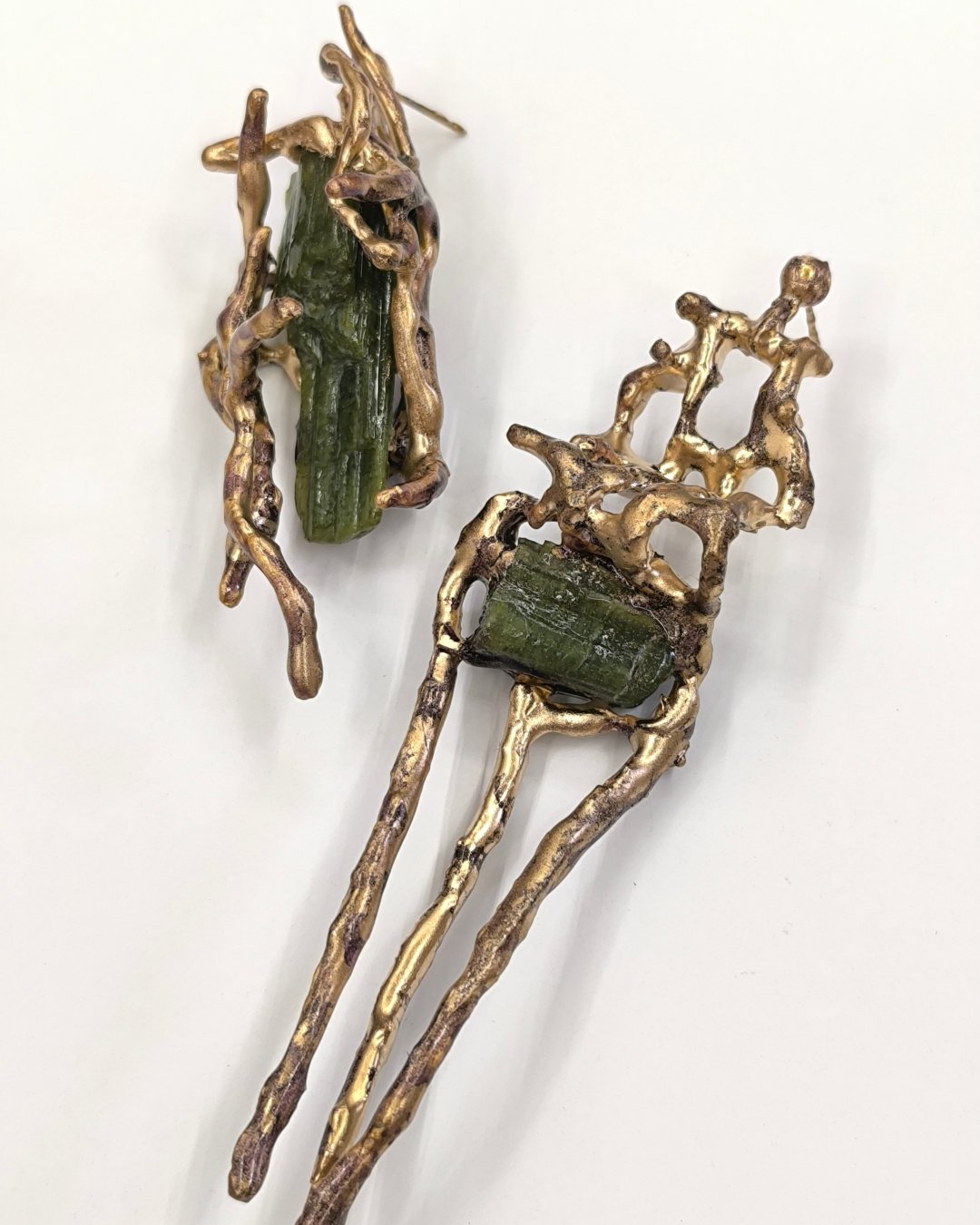 this jewelry collection is as indefinable as the postmodernism and is taken from the most private states and inner sensitivities of a woman in today’s society and in the entire history of the feminine existence.The different and beautiful design of this work can help you have a special style.The Gold Green Earrings (Code: M-H20-2) are a stunning fusion of color, artistry, and sophistication.Lightweight and comfortable, these earrings are ideal for all-day wear, effortlessly complementing both casual and formal ensembles. Each pair is unique, reflecting the artisan’s careful attention to detail and commitment to handcrafted excellence.Perfect as a thoughtful gift or a personal statement piece, the Gold Green Earrings (Code: M-H20-2) bring creativity, elegance, and artisanal charm to any jewelry collection. Their luxurious color combination, versatile design, and handcrafted quality make them a standout accessory that celebrates individuality, style, and refined craftsmanship.
