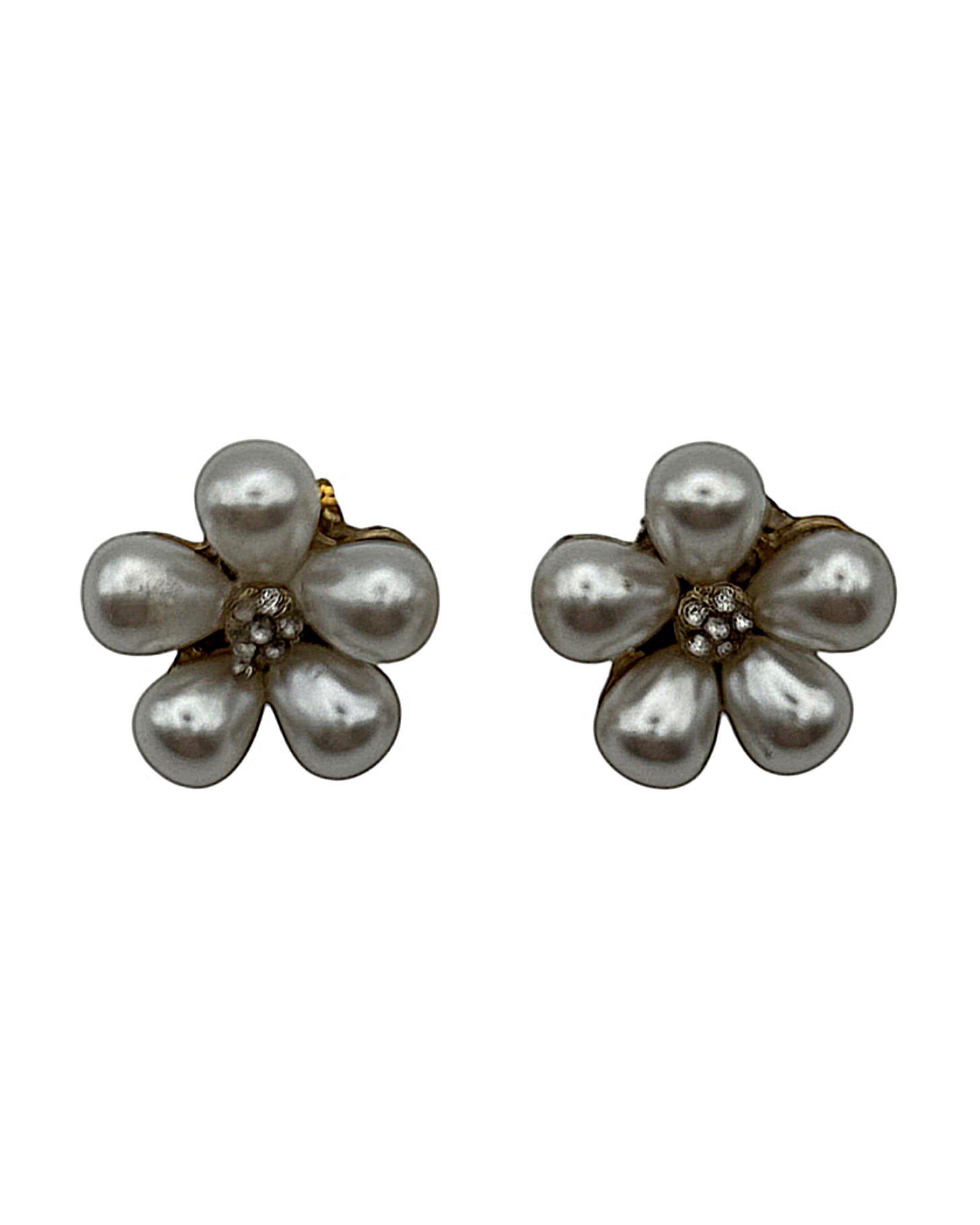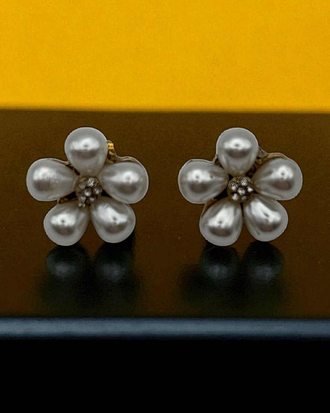 Golden Bloom Earrings with Pearl Center- Delicate floral earrings crafted from gold-plated metal, featuring a luminous pearl center—perfect for timeless elegance and poetic charm.