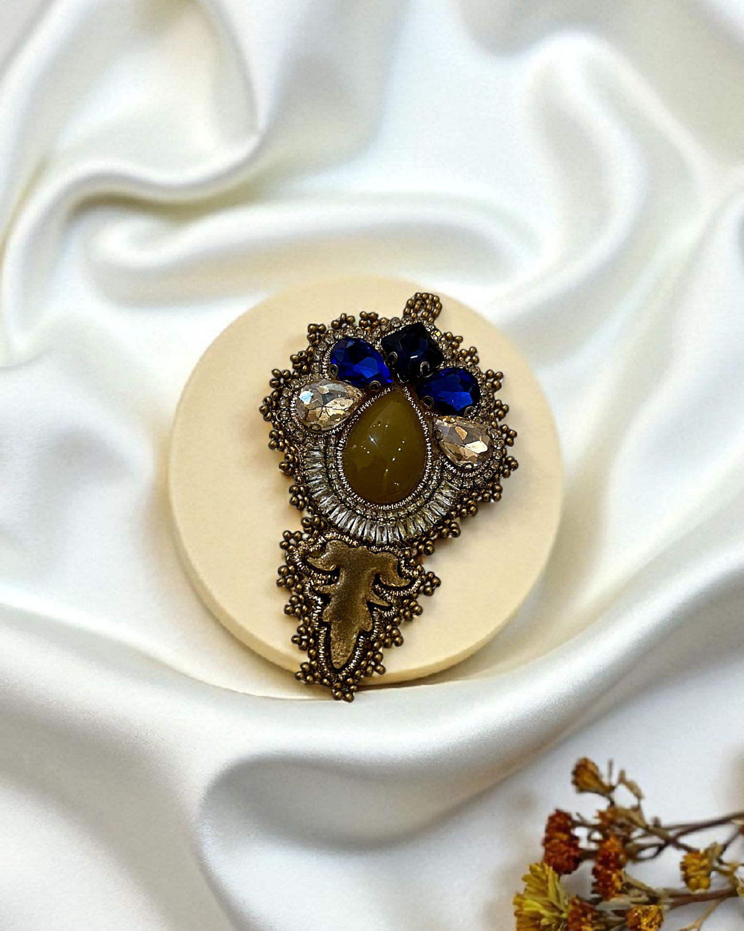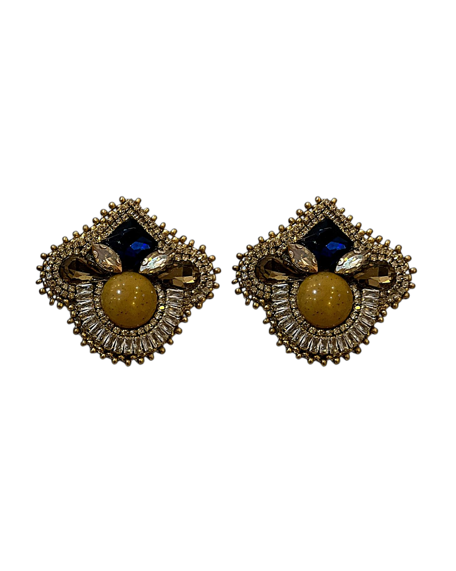 Step into a world where craftsmanship meets poetry. These Golden Cube Earrings are a celebration of intricate jewelry embroidery, blending tradition with modern artistry. Each piece is meticulously handcrafted, featuring a central resin stone that glows with warmth, surrounded by a constellation of crystals that catch the light with every movement. The symmetrical design evokes harmony, while the marquise accents and deep blue gem add a regal touch. Perfect for festive occasions or statement styling, these earrings are more than accessories—they’re wearable stories. Made for those who cherish detail and emotional resonance, the earrings reflect the soul of slow fashion and symbolic design. The golden cube structure offers a sense of grounded elegance, while the handcrafted elements ensure no two pieces are ever truly alike. Whether paired with minimalist attire or layered with other artistic pieces, these earrings elevate your look with intention and grace. Ideal for collectors, creatives, and anyone drawn to jewelry that speaks in whispers of light and legacy.