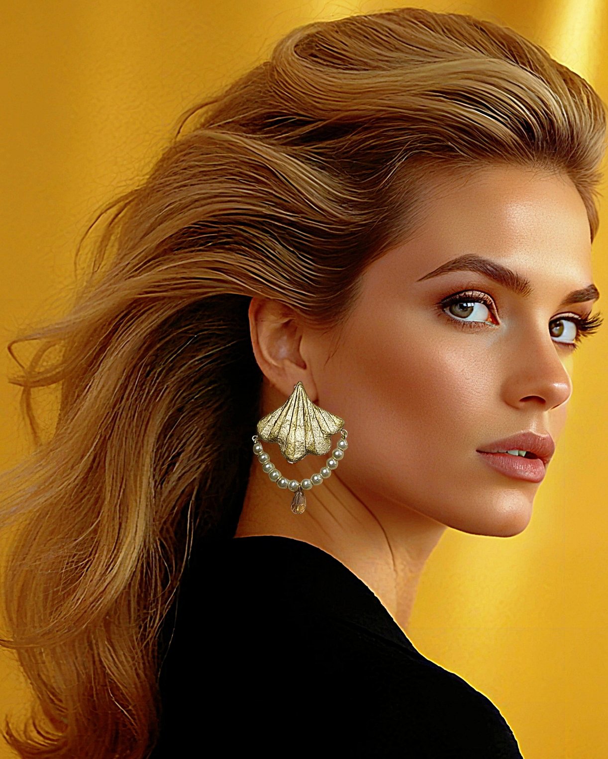 Celebrate nature’s timeless elegance with these handcrafted Ginkgo leaf earrings, where symbolism meets artistry. Each leaf is sculpted using the delicate technique of papier-mâché, making the earrings feather-light and comfortable for all-day wear. The surface is brushed with real gold powder, giving the piece a radiant, antique glow that catches the light with every movement. Beneath the leaf, a graceful arc of pearl-like beads adds softness and refinement, while a teardrop-shaped amber bead anchors the design with warmth and depth. Inspired by the resilience and beauty of the Ginkgo tree—often seen as a symbol of longevity and hope—these earrings are more than accessories; they’re wearable poetry. Perfect for formal occasions, artistic gatherings, or simply elevating your everyday look, they blend organic textures with luminous finishes. Whether styled with minimalist neutrals or rich jewel tones, they invite conversation and admiration. Lightweight, symbolic, and visually striking, they embody the harmony of nature and craftsmanship.