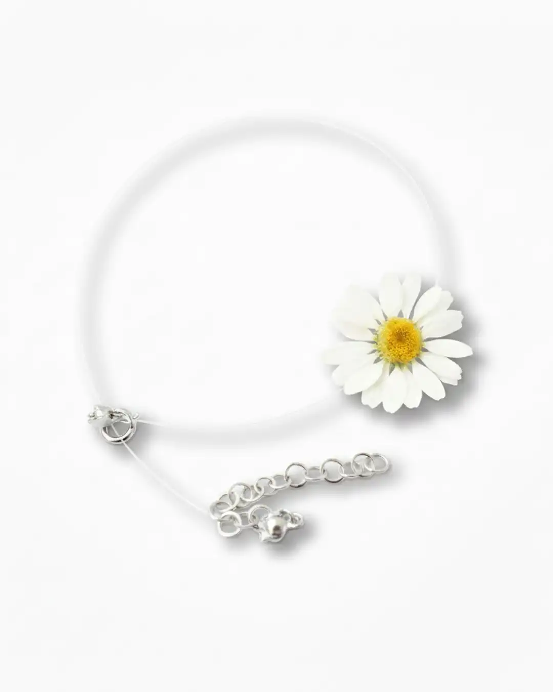 Handmade Choker with April Birth Flower Daisy, Gift for Her, Nature Lover’s Gift, Invisible Strap Necklace, Delicate Nature Gift