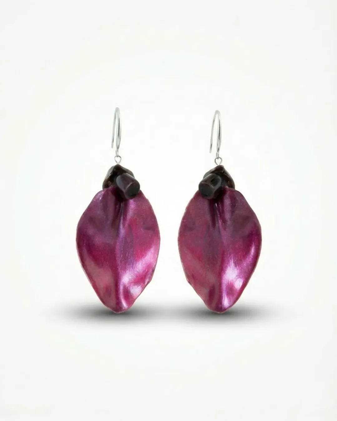 These are not mass-produced earrings. The texture you see is real. The slight curves and natural irregularities are not design flaws — they are proof of authenticity. The finish enhances the petal’s depth without masking its natural character.