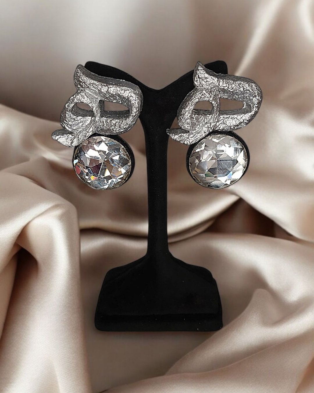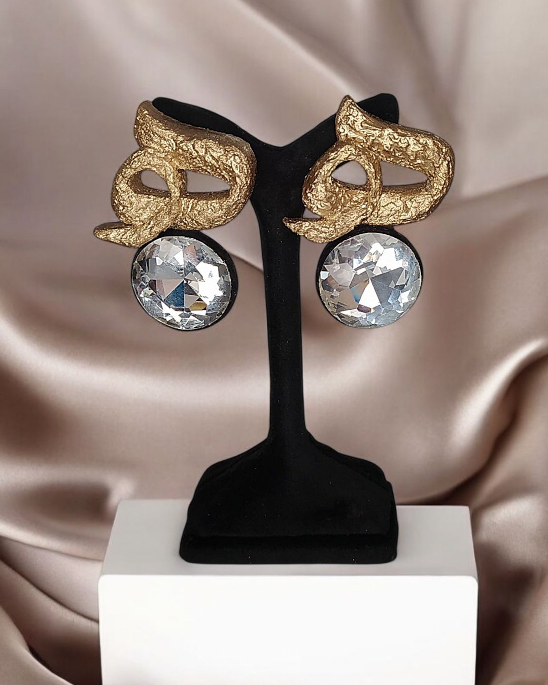 Elevate your style with these exquisite earrings, meticulously handcrafted from papier-mâché. The lightweight nature of the material ensures comfortable wear, while its durability guarantees long-lasting beauty. The earrings are carefully treated to be water-resistant, allowing you to wear them with confidence in any weather. Each pair is painted with liquid gold leaf, adding a touch of luxury and sophistication. The intricate details are further enhanced with vibrant acrylic paint, creating a truly unique and eye-catching accessory. These earrings are the perfect statement piece to complement any outfit, adding a touch of artistry and elegance to your look. The Hich Large Paper Mache Earrings are bold, handcrafted accessories that merge artistic design with contemporary style. Made from sustainable paper mache, each earring is carefully shaped, painted, and assembled by skilled artisans, ensuring that every pair is unique. Despite their large size, these earrings are lightweight, offering all-day comfort while making a striking, statement-making impression. Their dramatic design features graceful curves, intricate textures, and a polished finish that reflects light beautifully, adding depth and sophistication to any outfit. Perfect for elevating casual ensembles, enhancing professional attire, or serving as a standout accessory for special occasions, the Hich Large Earrings combine boldness with elegance. More than just jewelry, the Hich Large Paper Mache Earrings embody creativity, individuality, and artisanal craftsmanship. Ideal for those who appreciate unique, handcrafted pieces with personality, they provide a stylish accent that enhances personal expression. Each pair reflects meticulous attention to detail, making these earrings a treasured addition to any jewelry collection.