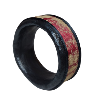 Hich – Handmade Paper Mache Bangle Embrace nature’s charm with this unique papier-mâché bangle, perfect for those with a love for the natural world. Each piece is meticulously handcrafted and painted with acrylic colors and liquid gold leaf, creating a mesmerizing blend of earthy tones and shimmering accents. The textured surface is achieved through a special technique, adding depth and dimension to the design. The bangle is then carefully patinated to enhance its vintage appeal and protect it from the elements.
