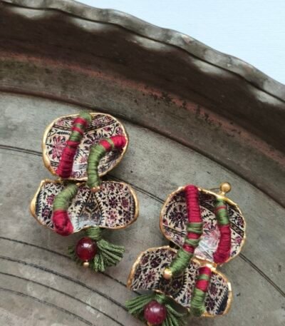 • Yalda handmade earrings Papier-Mache with red & green stone