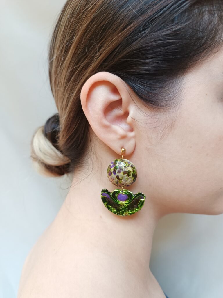 • Yalda handmade earrings Papier-Mache with red & green stone
