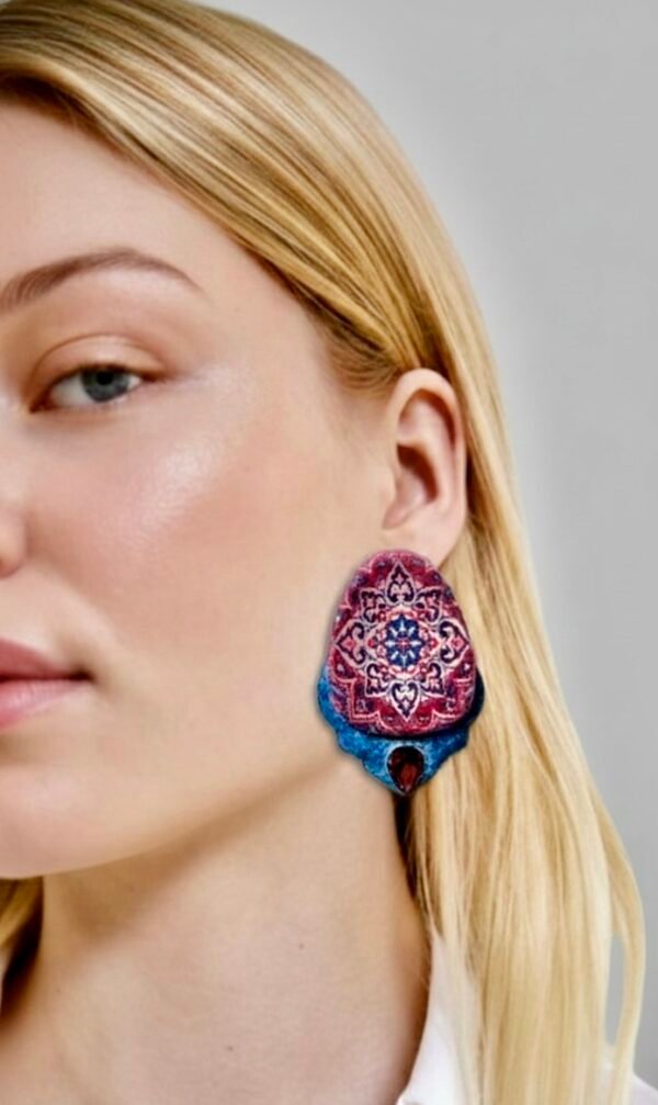 • Zivar Handmade earrings Papier-Mache with Pink Stone Earrings