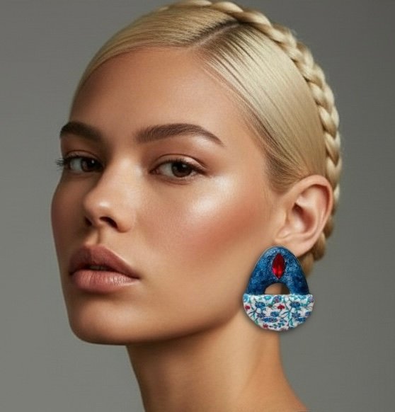 • Ziba Handmade earrings Papier-Mache With Multicolor, Blue and Green stone Earrings