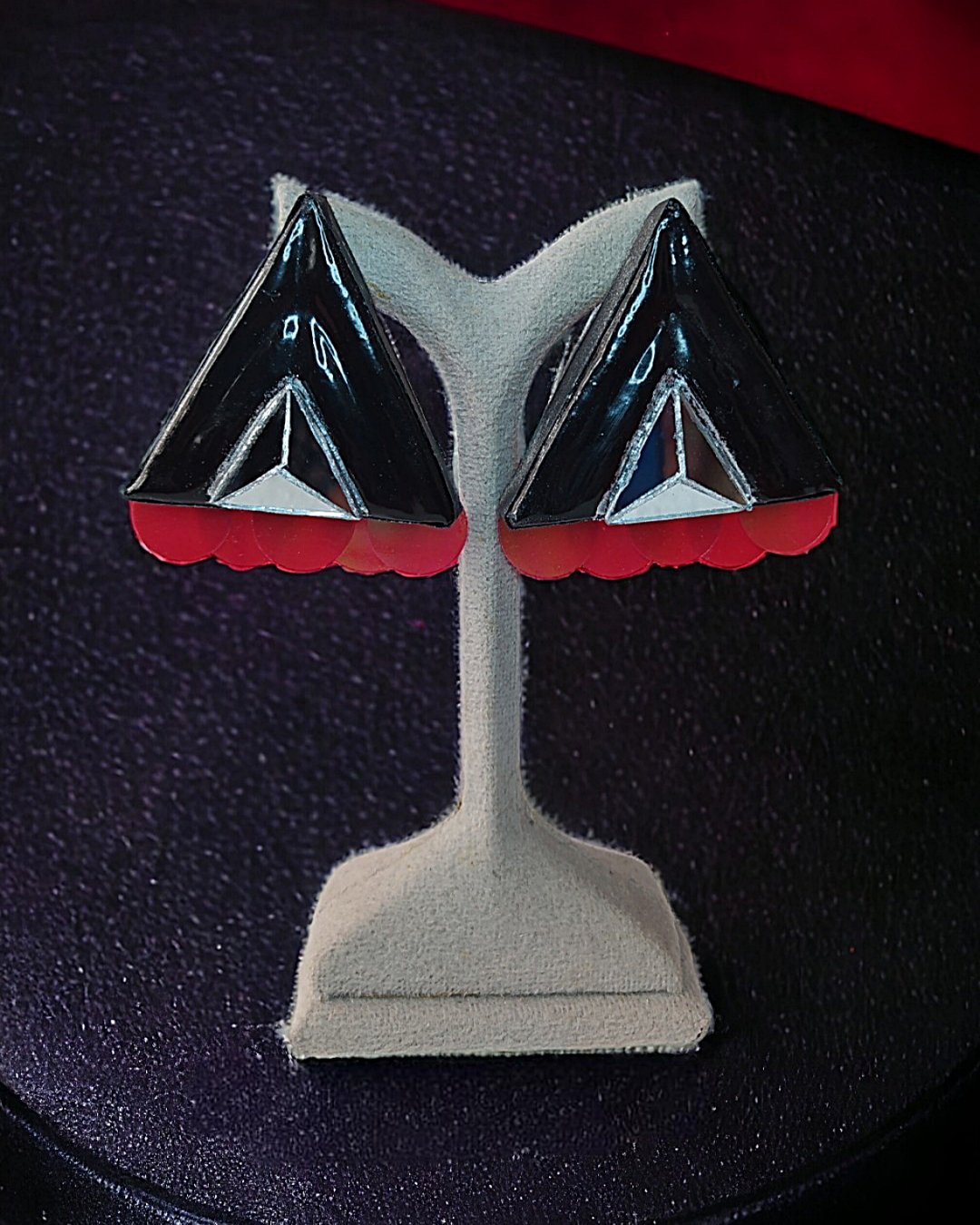 Mirror Majesty – Handmade Earrings – Light Weight earrings are a stunning fusion of Persian mirror work and modern design. Made from papier-mâché, wood, faux leather, and mirror inlay, these lightweight, water-resistant earrings feature bold geometric patterns and shimmering sequins for a captivating look. A perfect choice for those who appreciate heritage with a modern twist!
