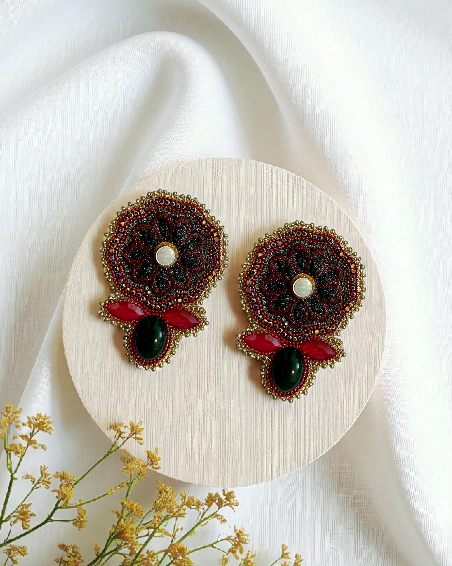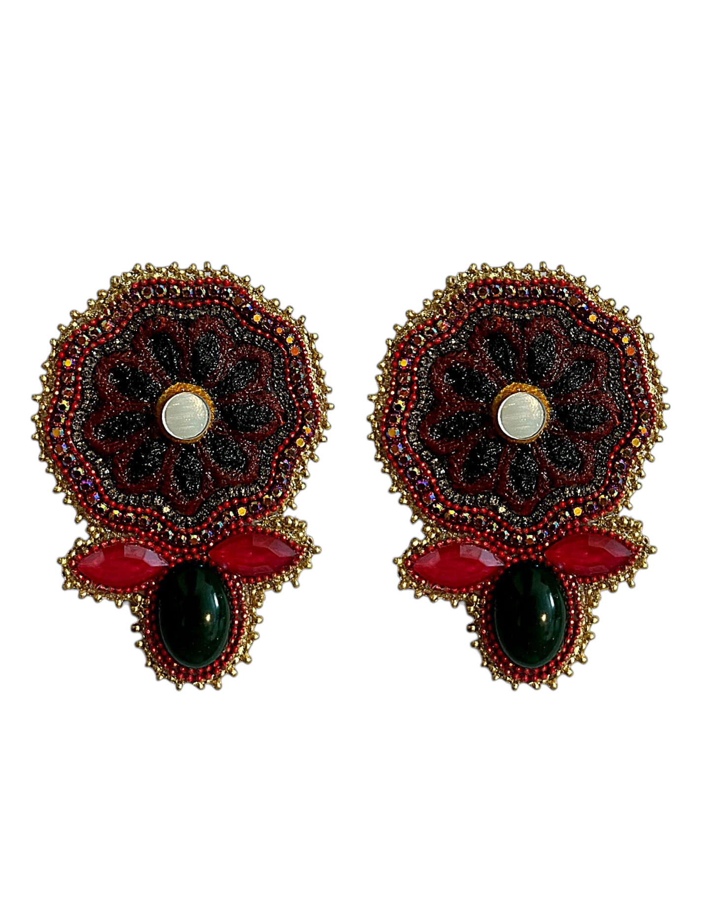 Pomegranate Bloom – Handmade Jewel-Embroidered And Paper Mache Earrings