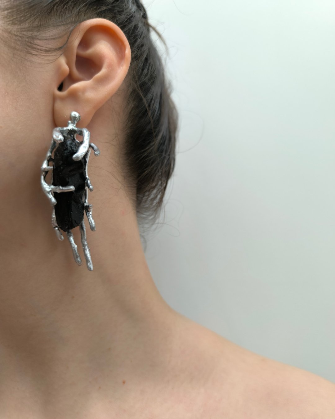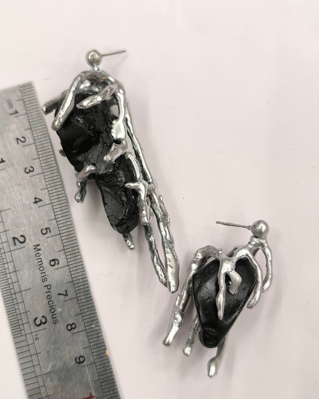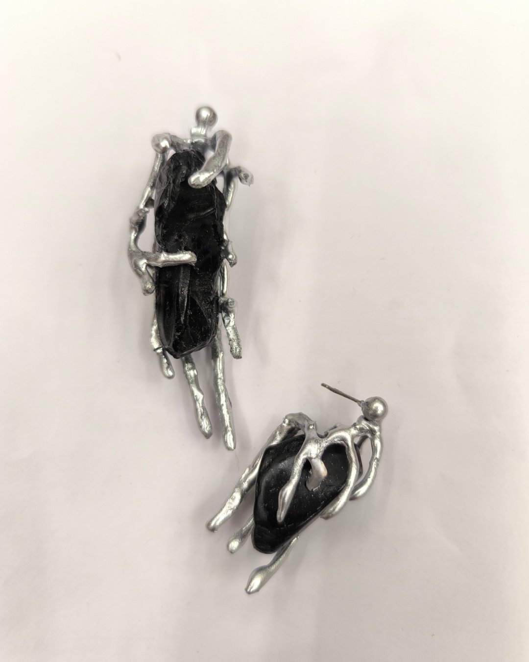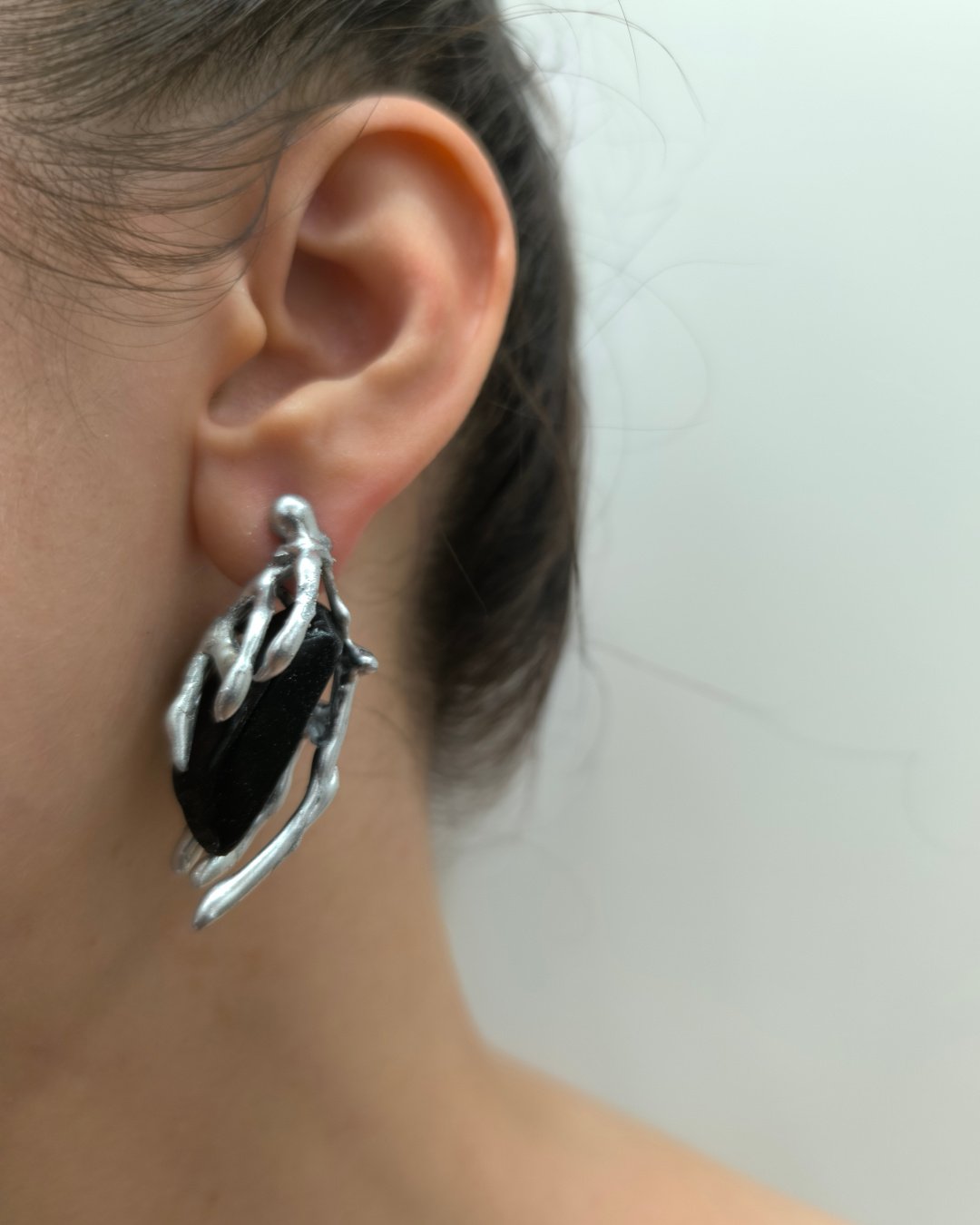 The Silver Black Earrings (Code: M-H12-2) are a stunning fusion of color, artistry, and sophistication.