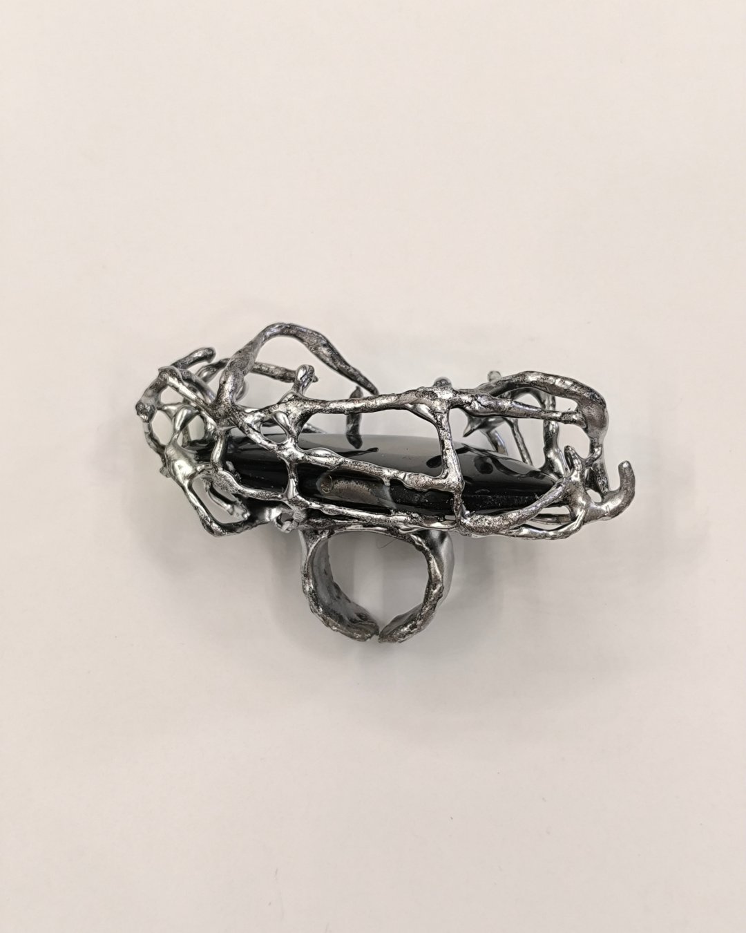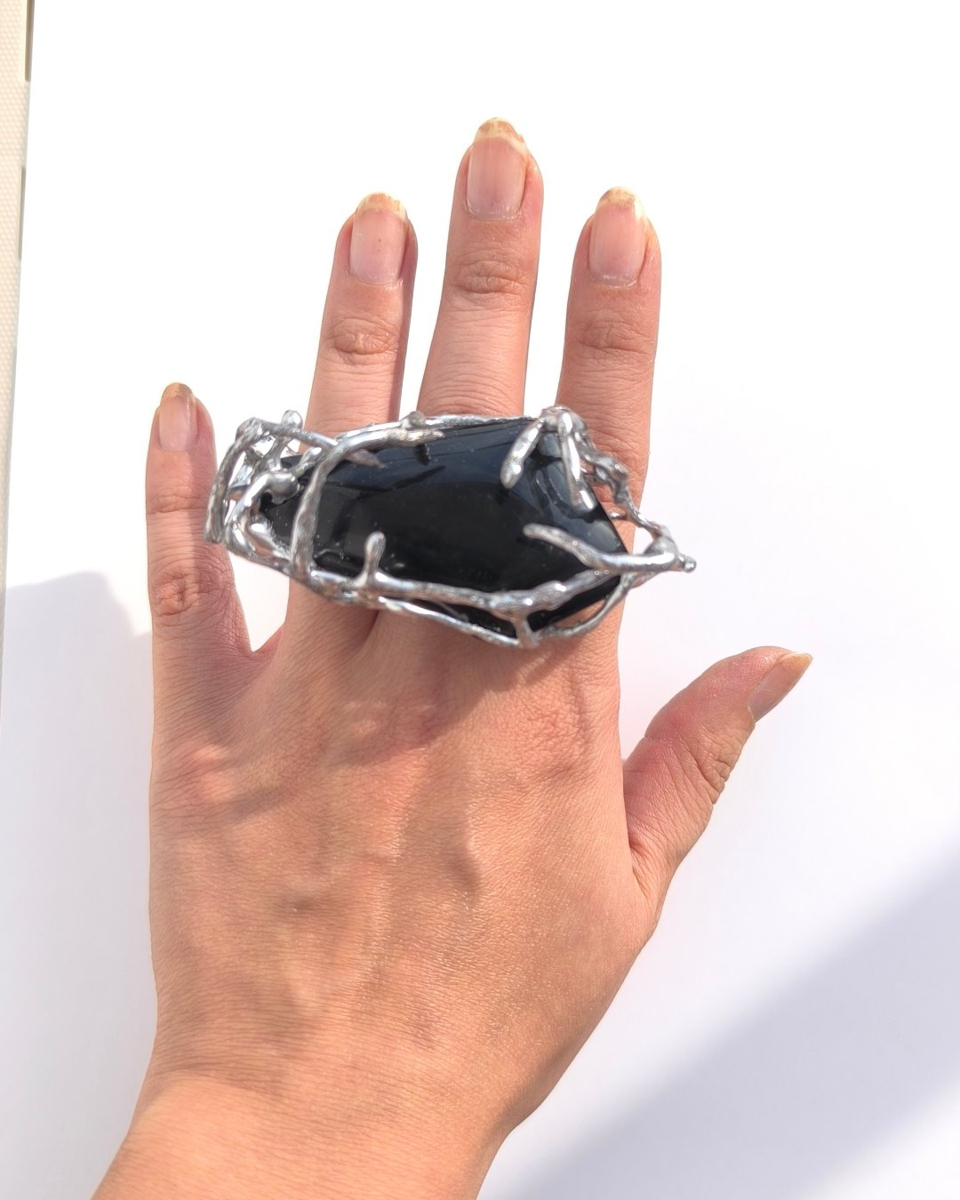 this jewelry collection is as indefinable as the postmodernism and is taken from the most private states and inner sensitivities of a woman in today’s society and in the entire history of the feminine existence.The different and beautiful design of this work can help you have a special style.The Silver Black Ring (Code: M-H19-1) are a stunning fusion of color, artistry, and sophistication.Lightweight and comfortable, these earrings are ideal for all-day wear, effortlessly complementing both casual and formal ensembles. Each pair is unique, reflecting the artisan’s careful attention to detail and commitment to handcrafted excellence.Perfect as a thoughtful gift or a personal statement piece, the Silver Black Ring (Code: M-H19-1) bring creativity, elegance, and artisanal charm to any jewelry collection. Their luxurious color combination, versatile design, and handcrafted quality make them a standout accessory that celebrates individuality, style, and refined craftsmanship.