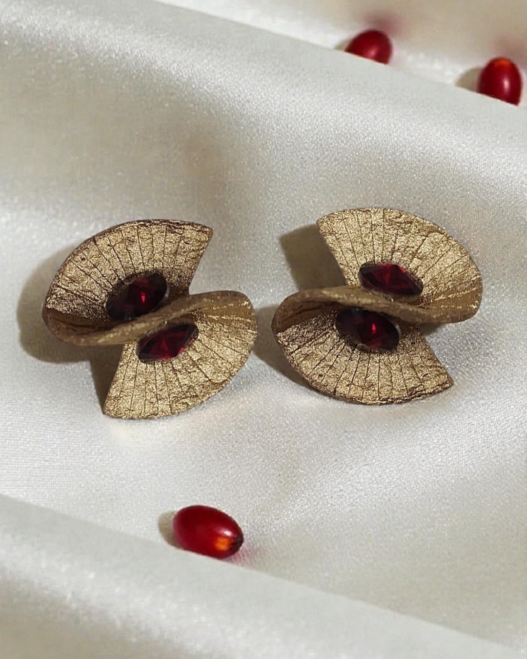 Elevate your everyday style with these handcrafted papier-mâché Suntrace earrings, meticulously sculpted for a feather-light feel and finished with a luminous touch of gold powder. Their organic texture and subtle shimmer evoke a sense of poetic elegance, making them perfect for both minimalist and statement looks. Each pair is a wearable sculpture—light as air, yet rich in visual depth. The gold powder finish catches the light with every movement, adding warmth and sophistication to your ensemble. Designed for comfort and impact, these earrings celebrate the fusion of sustainable artistry and timeless beauty. Ideal for fashion lovers who seek meaning in every detail.